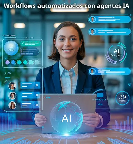 Nuestro enfoque no se limita a la automatización; nos centramos en la inteligencia artificial para transformar tu negocio. Hemos evolucionado para priorizar el poder de los Agentes IA de texto y voz. Con ellos, liberamos a tu equipo, mejoramos la eficiencia y capturamos más oportunidades.
